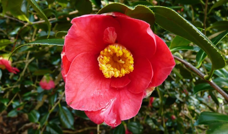 Camellia flower blight can be a problem, particularly in areas with high temperature and humidity. Viral diseases, honey fungus and leaf spot can also occur.