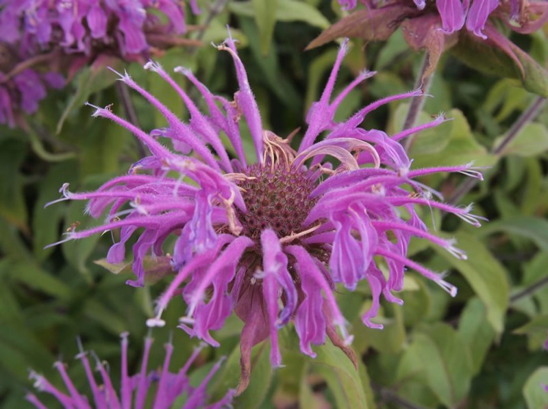 Monarda ‘Violet Queen’ is a hybrid of Monarda didyma and Monarda fistulosa. It has been awarded the RHS Award of Garden Merit (AGM).